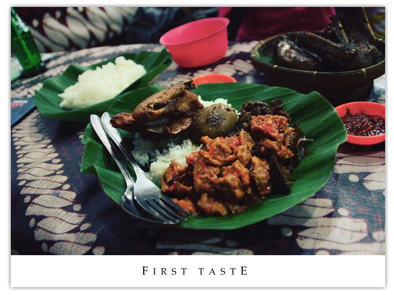 | Found our first dinner of the trip in Malioboro street, properly the most happening spot around town, just around the corner from our hotel. Seen here is a collection of bebek goreng, gudeg (cooked jackfruit) and some beancurds. | |||