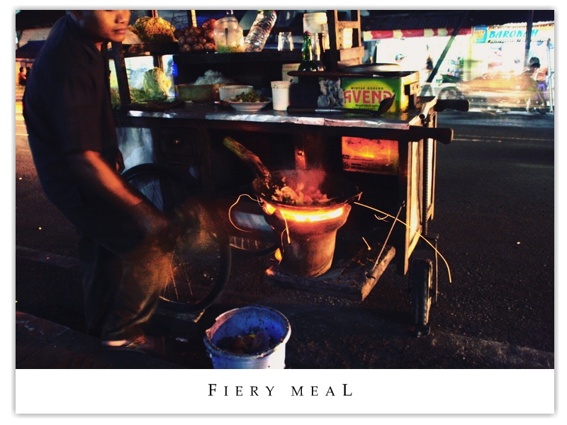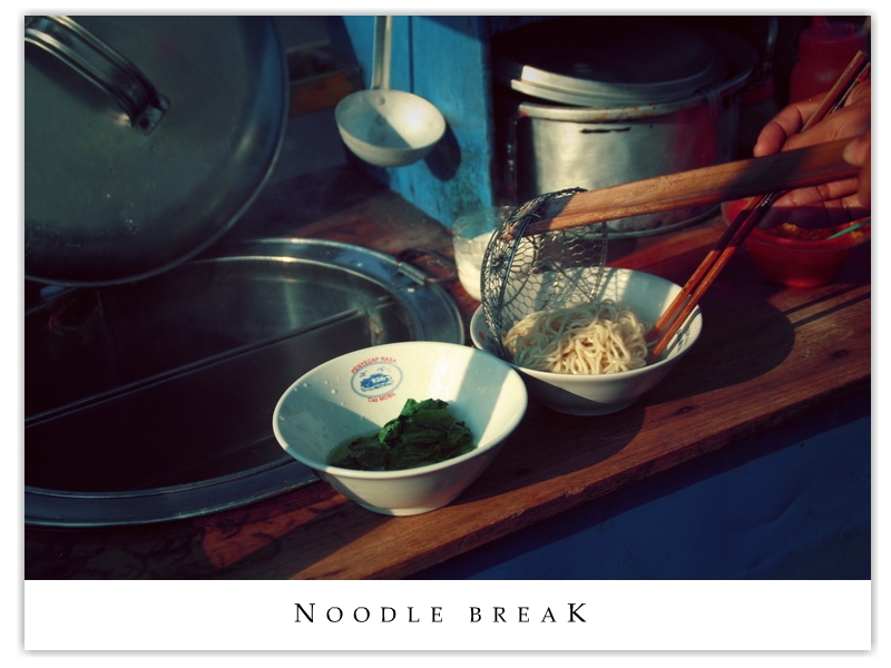 | Itching for something to bite after the barely enough dinner, we found this charming little mobile stall not far from the hotel, still using charcoal for frying stuff. Sat in a row on the bench just by the street and camwhored and had noodles - heavenly. | |||