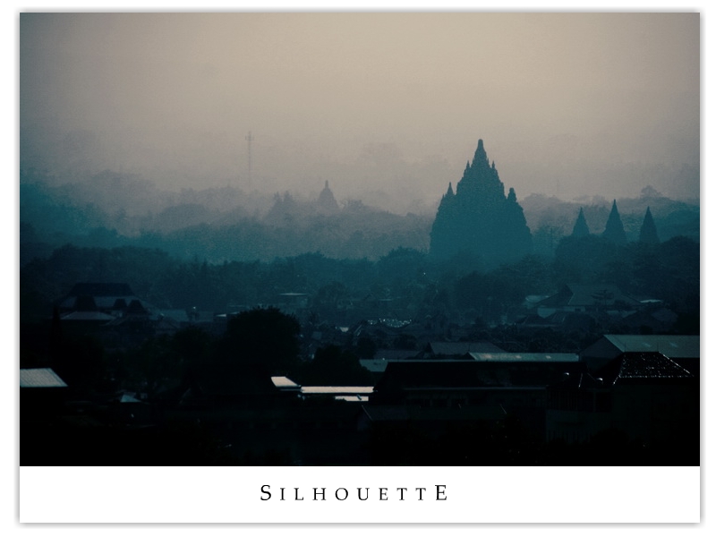 | Prambanan, appearing as a small pointy object in this pic against the sweeping Mt Merapi (I think) in the background. | |||