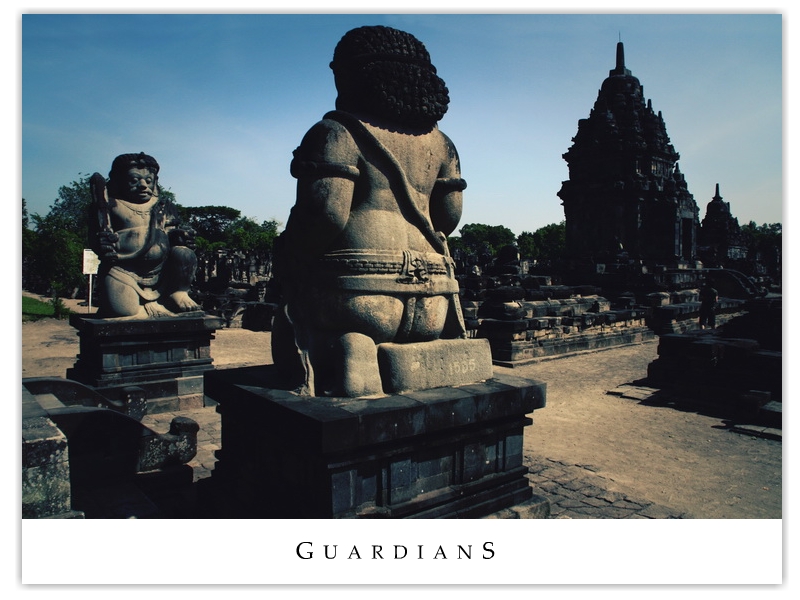 | The charming Dwarapala statues guarding the entrance of Candi Sewu. Beer bellies can't look more cool than this. | |||