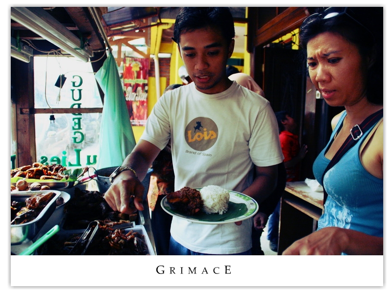 | Eva, obviously having a difficult time deciding what dishes to take for lunch from the famed collection of restaurants selling Gudeg. | |||