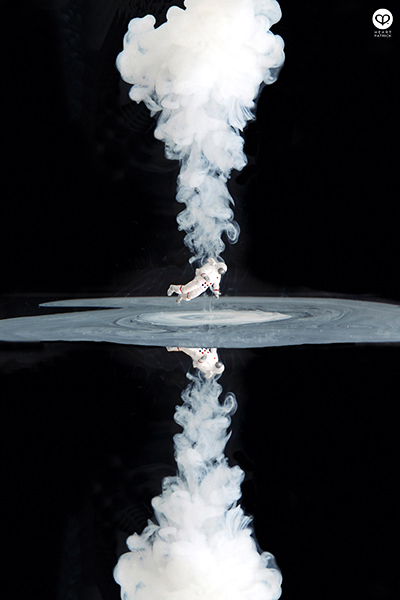 PRODUCTS/ MINIATURE • JUL 2021 MINIATURE ASTRONAUT SERIES: Today's adventure brought the tiny astronaut to yet another colorful ocean, this time made of food dyes. Got a small and simple aquarium for this shoot. Lost count of the number of times I had to refill it as I experiment with different backdrop and dye colors. Overall a fun shoot nevertheless.