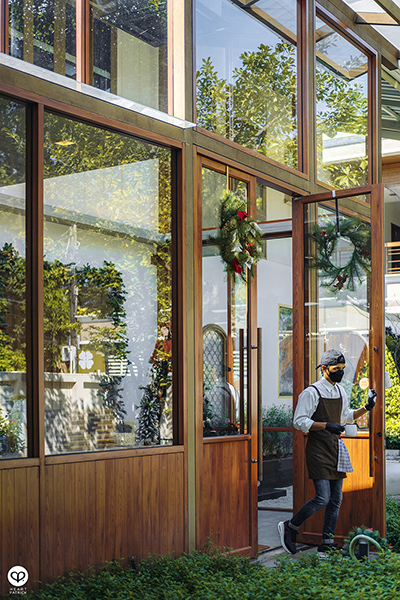 SPACES • JAN 2023 Nestled deep in the quiet landed residental enclave within Sukhumvit is Japanese glasshouse-inspired Glig. This beautiful space with its lush adjoining garden is best visited on a sunny late morning.