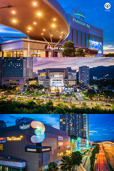 SPACES/AERIAL • MAR 2022 PROPERTY PORTFOLIO FOR This assignment brought us on an amazing race trip across a few cities in Peninsula Malaysia, where we covered 5 different malls owned by Capitaland within and outside of the Klang Valley region. These are Jumpa/Sungai Wang @ Bukit Bintang, The Mines @ Sri Kembangan, 3 Damansara @ Damansara, East Coast Mall @ Kuantan and Gurney Plaza @ Penang.