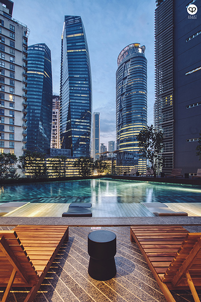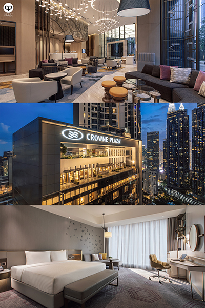 SPACES • OCT 2023 After a hiatus of more than 10 years, the Crowne Plaza brand is back in the city, with the opening of their latest property in the KLCC area. This 320-room four-star hotel is part of a two-wing block facing Yap Kwan Seng and the Petronas Twin Towers, with key architecture features being the crystal glass effect cascading across the building facade and the rooftop swimming pool.