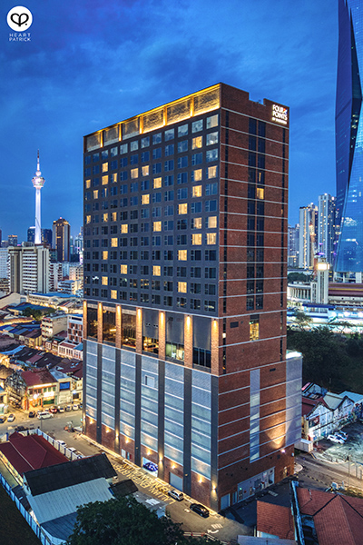 SPACES • AUG 2020 FOUR POINTS BY SHERATON KL Chinatown has a beaming new icon, and that's Sheraton hotels' third Four Points Hotel in Malaysia. dwp delivered a design that takes inspiration from the charming heritage identity of this neighbourhood, featuring exposed raw bricks, warm wood and traditional jade-hued tiles.