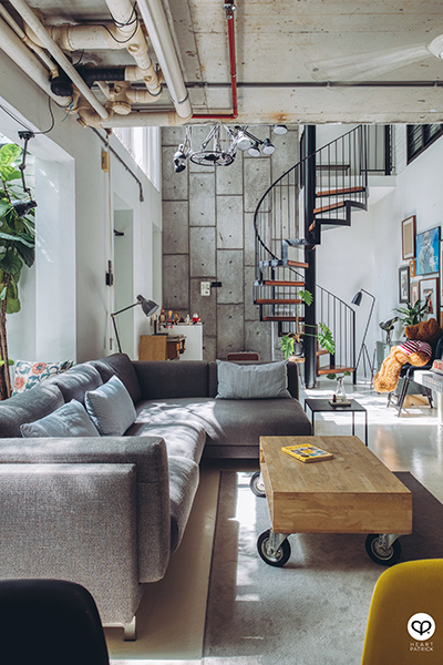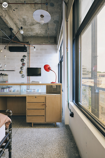 SPACES • APR 2019 IRON HOTEL The industrial design may have been rather mainstream for quite a few years, but amidst the run-of-the-mill looks of some of the spaces that adopted this trend, IR-ON Hotel's striking interiors reflect a beautiful balance that made elements like metalwork and exposed concrete slabs blend really well with the finer touches such as recycled furnitures and plenty of lush greeneries.