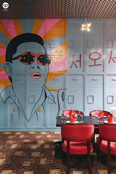 SPACES • APR 2017 THAI HOU SEK Had a fun time covering yet another one of Genius Loci's f&b spaces in KL. Thai Hou Sek's porky dishes may be falling off the centerstage as the signature neon light signboard slash deco competes for attention with a gorgeous impressionistic wall mural of the Thai King.